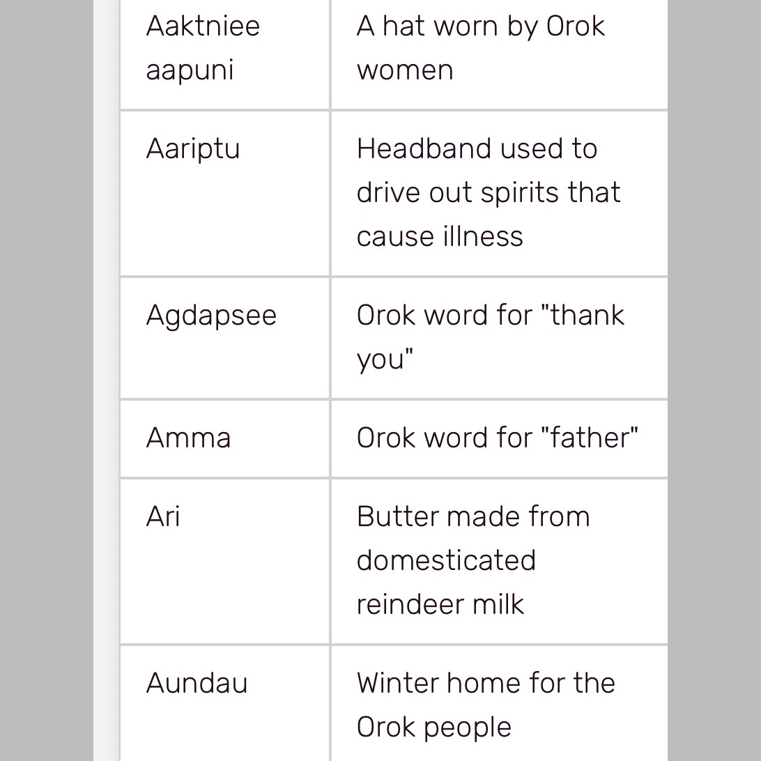 Here are some samples of Orok grammatical features…